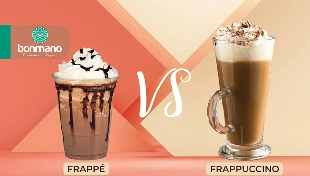 2- از نظر مواد پایه، هر دو با ترکیبی از قهوه (فوری یا اسپرسو)، یخ، شیر یا خامه آماده میشوند و تاپینگهایی مثل خامه فرمگرفته، شکلات یا کارامل برای هر دو کاملاً رایج است.
